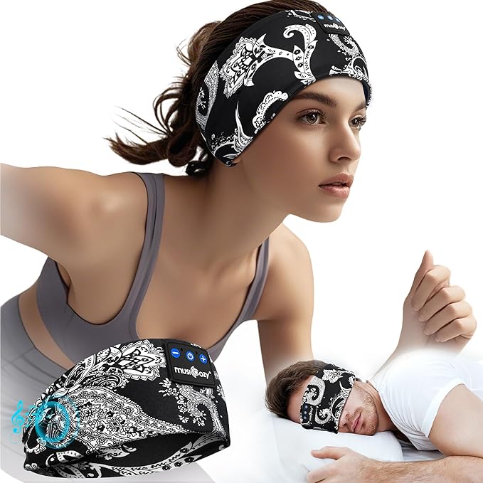 MUSICOZY Casque de sommeil Bluetooth 5.4, confortable et ultra léger, avec son Hi-Fi, autonomie de 14 heures, casque de sommeil confortable pour les personnes dormant sur le côté, les voyages.
