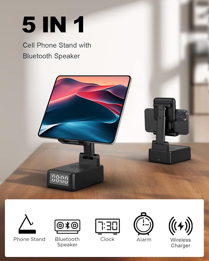 Je cherchais un cadeau original et je suis tombé sur cette enceinte 5 en 1 — franchement bluffant ! Le son est clair et puissant pour sa taille, le chargeur sans fil est super pratique pour poser son téléphone la nuit, et le réveil fonctionne parfaitement. Le support pliable est un vrai plus pour regarder des vidéos. Tout ça dans un seul appareil, c’est imbattable rapport qualité/prix. Je l’ai offert à mon père pour son anniversaire et il est ravi. Je recommande sans hésiter !