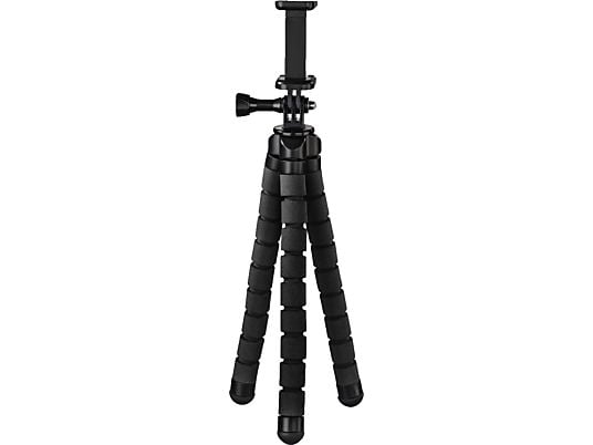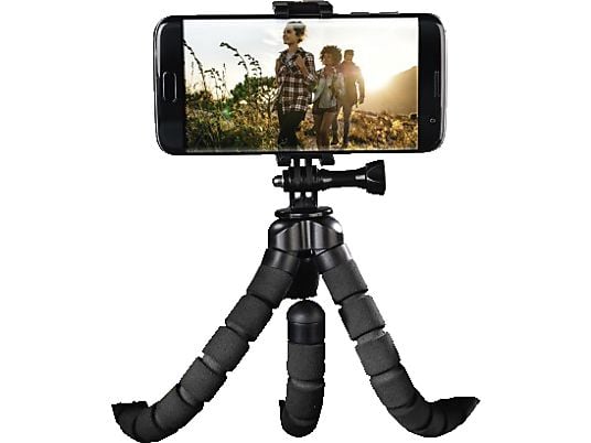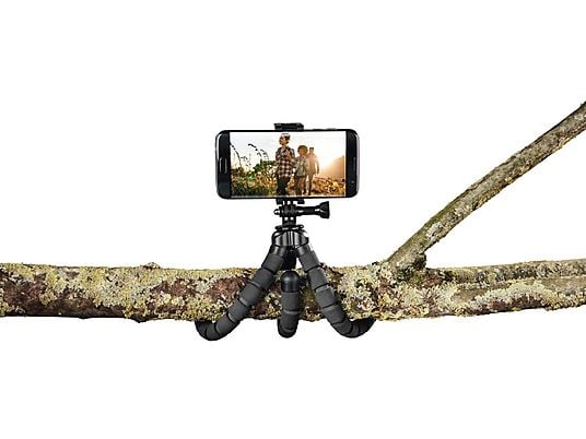 Des photos et des vidéos variées sensationnelles prises depuis des angles de vues originaux et des lieux inhabituels. Des pieds de trépied flexibles séparément et de façon continue : ils s’adaptent ainsi à de nombreux sols et objets et permettent une utilisation comme monopode. Pour des selfies (photos et vidéos), parfait pour les journaux de bord vidéo, les blogs, idéal pour les voyages, les déplacements. Les selfies instables et mal cadrés appartiennent au passé. Les pieds du trépied sont revêtus d’une mousse de qualité supérieure offrant une flexibilité maximale et une prise en main optimale, ce qui s’avère particulièrement agréable par temps froid. Extrêmement flexible, convient aux smartphones de 5,5 à 7,8 cm de large (au format paysage) grâce au support à ressort de serrage. Des parties en caoutchouc au niveau du support protègent le boîtier du smartphone des rayures. Pieds en caoutchouc pour une meilleure adhérence sur les sols lisses ou glissants. Peu encombrant : le support pour smartphone peut être replié. Support pour smartphone amovible et utilisable pour d’autres trépieds.